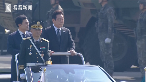 10月1日,韩国国防部在忠清南道鸡龙台举行阅兵仪式,纪念建军77周年。韩国总统李在明出席,乘车检阅仪仗队和武器。